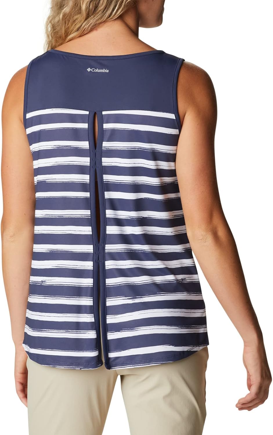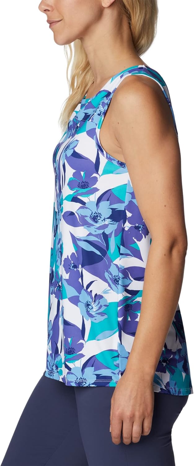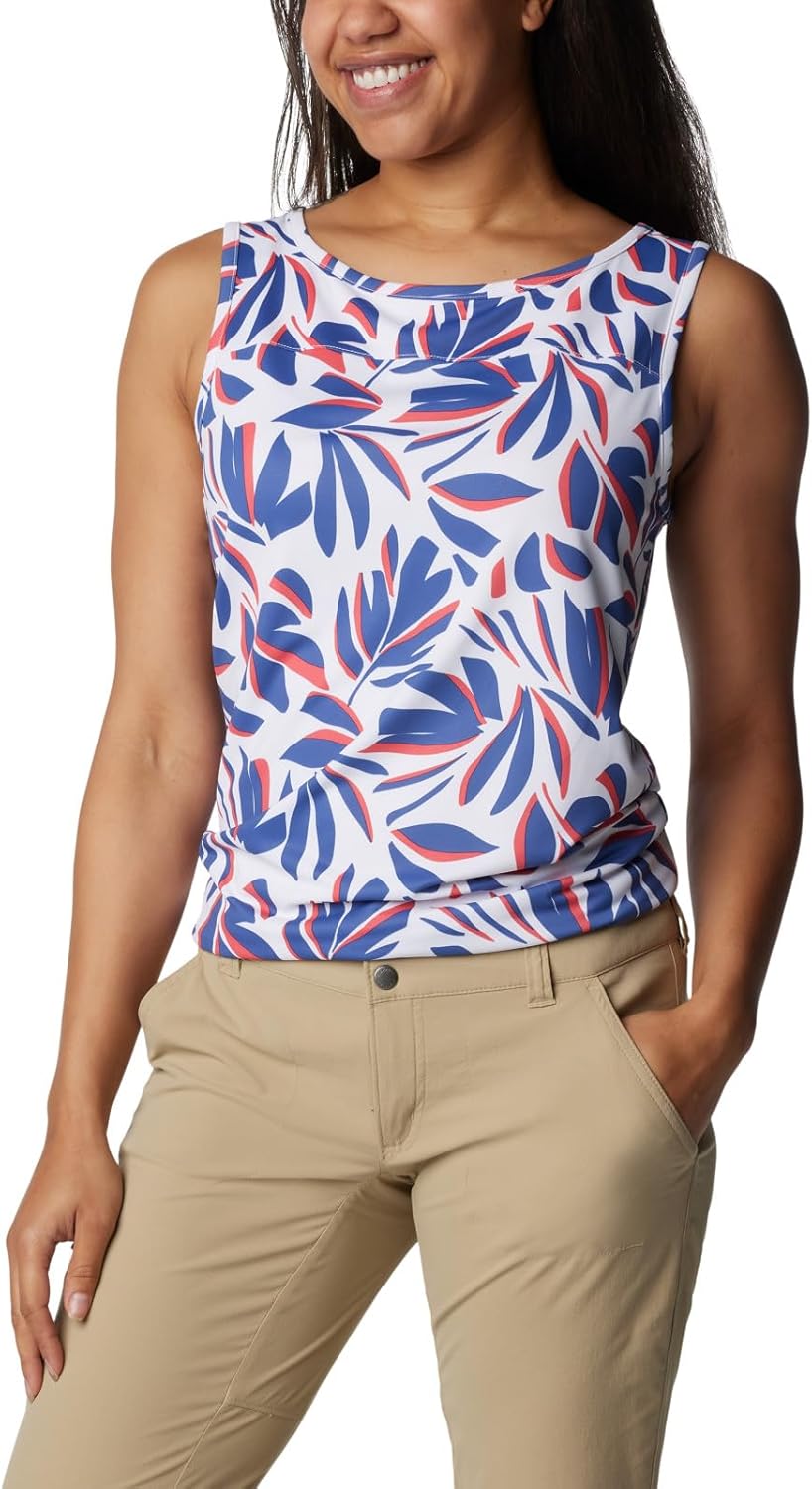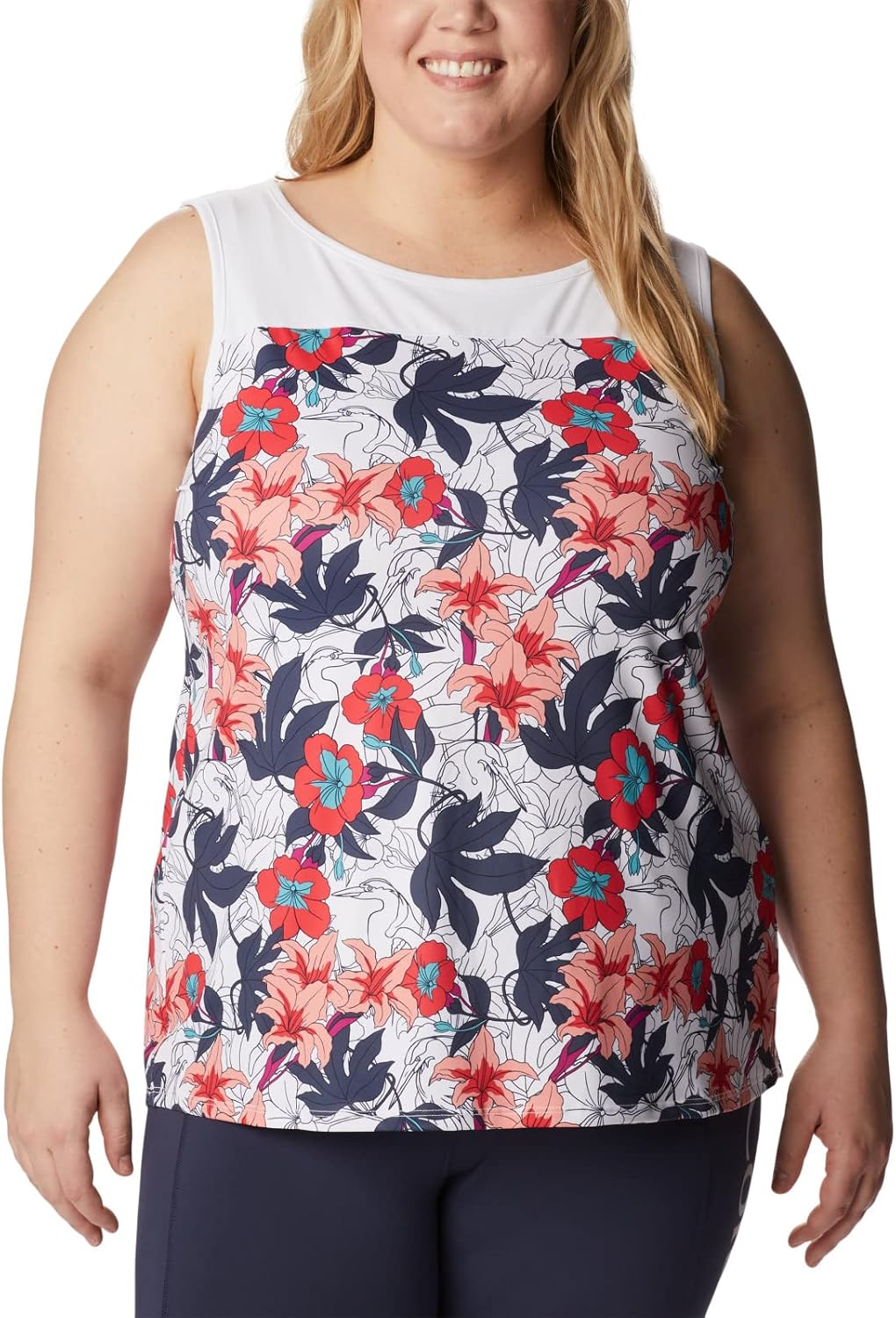 Warm weather, meet your new best friend. The Chill River Tank Top has UPF 50 for serious sun protection, moisture-wicking technology to help keep you dry, and fabric that releases heat and feels cool to the touch. A sunny-day, wear-anywhere, sleeveless tee, created for hot summer days. Take on the heat in style with an eye-catching center back seam, and a faltering vent pattern on the back. Advanced super cooling, moisture-wicking, sun protective fabric that is designed to keep you cool, dry, and comfortable all day. Columbia offers this women’s tank top in multiple colors and sizes. Extended sizing available. Active and Regular Fit. To ensure the size you choose is right, utilize our sizing chart and the following measurement instructions: For the chest, measure at the fullest part of the chest, under the armpits and over the shoulder blades, keeping the tape measure firm and level.